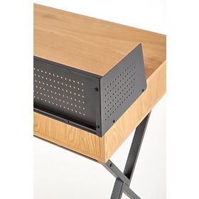 A modern writing desk combining golden oak and black, perfect for a home office. .. more
