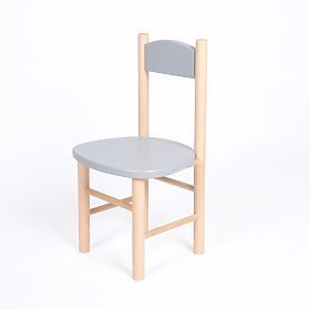 A children's wooden chair in a combination of gray and natural color will be a perfect addition to any table. The chair is made of beech wood and is characterized by high resistance to breakage. The edges of the chair are rounded for maximum safety.