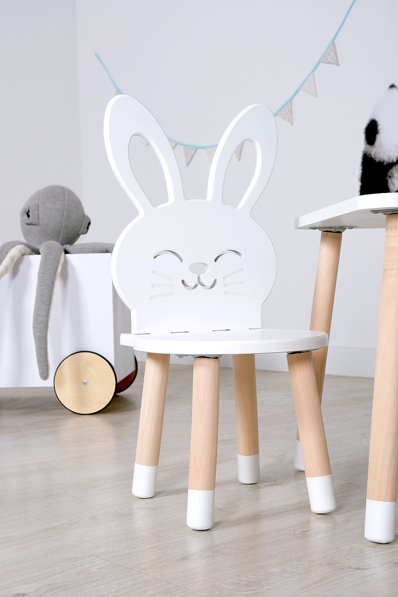 Beautiful wooden set of table and chairs in the shape of a rabbit that your children will surely love. This original set creates a cozy corner for drawing, reading, or having a snack.