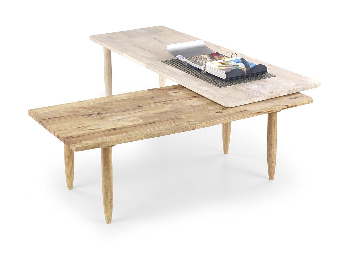 The table is made of solid rubberwood and is combined of two different sized tables.