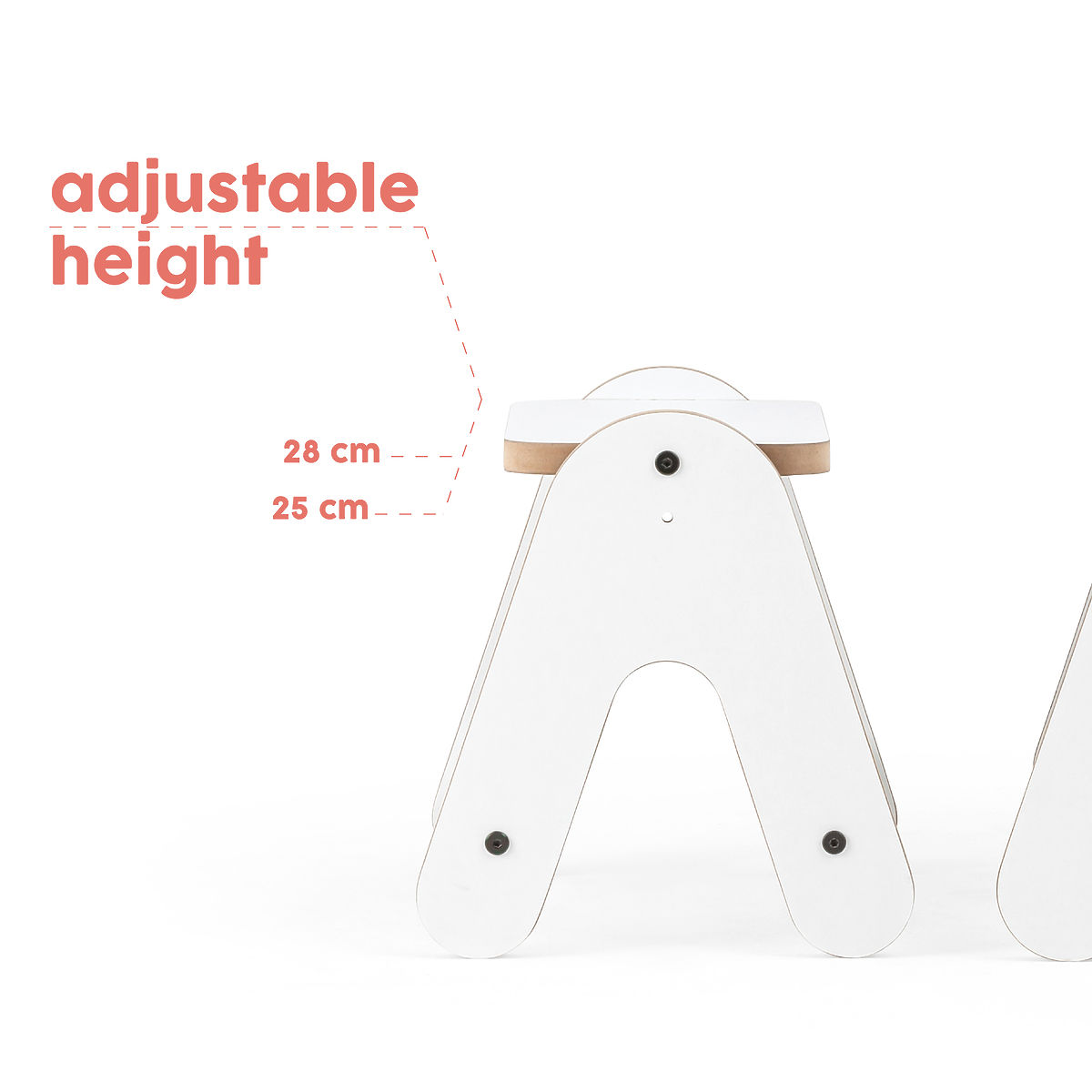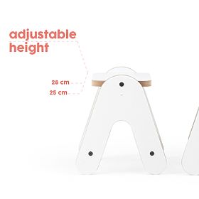 The height of the table is 50 cm. Ergonomically designed for use by children from 2 to 6 years old. Compatible with paper rolls 45 cm wide. The chair has 2 seating positions.