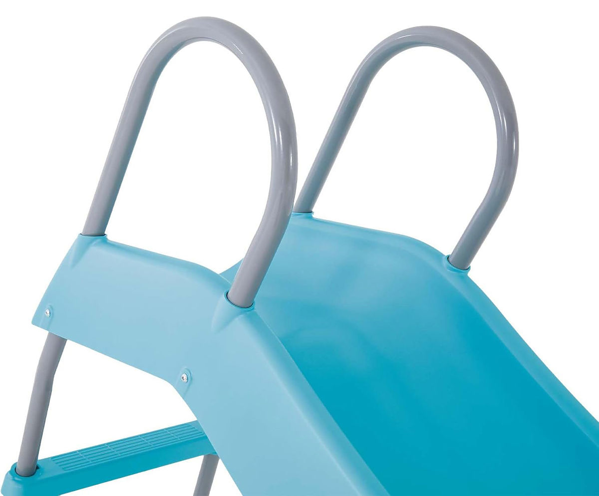 Provide your child with unforgettable moments of fun thanks to the sturdy slide from INTEX. Made from durable, powder-coated steel, it ensures stability and resistance to weather conditions. Safe, non-slip steps and a specially shaped plastic slide ensure comfort during use. With a slide length of 183 cm and its wavy design, the product offers plenty of fun and its dimensions make it ideal for a home garden.
