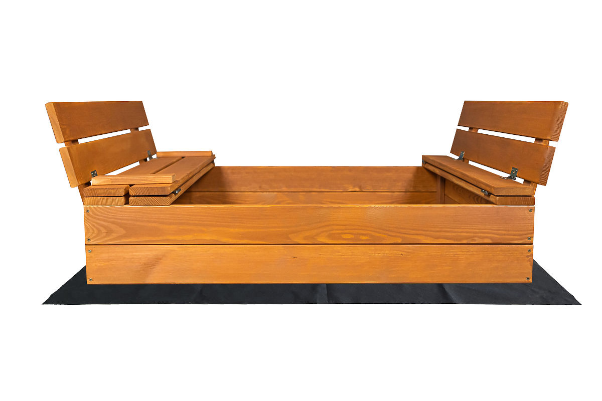 Children love to create, build, and model anything, and a sandbox with a pile of sand is a great place for their creative play or any favorite game. The wooden sandbox features a practical closing system that can be quickly transformed into benches for comfortable and safe seating.
