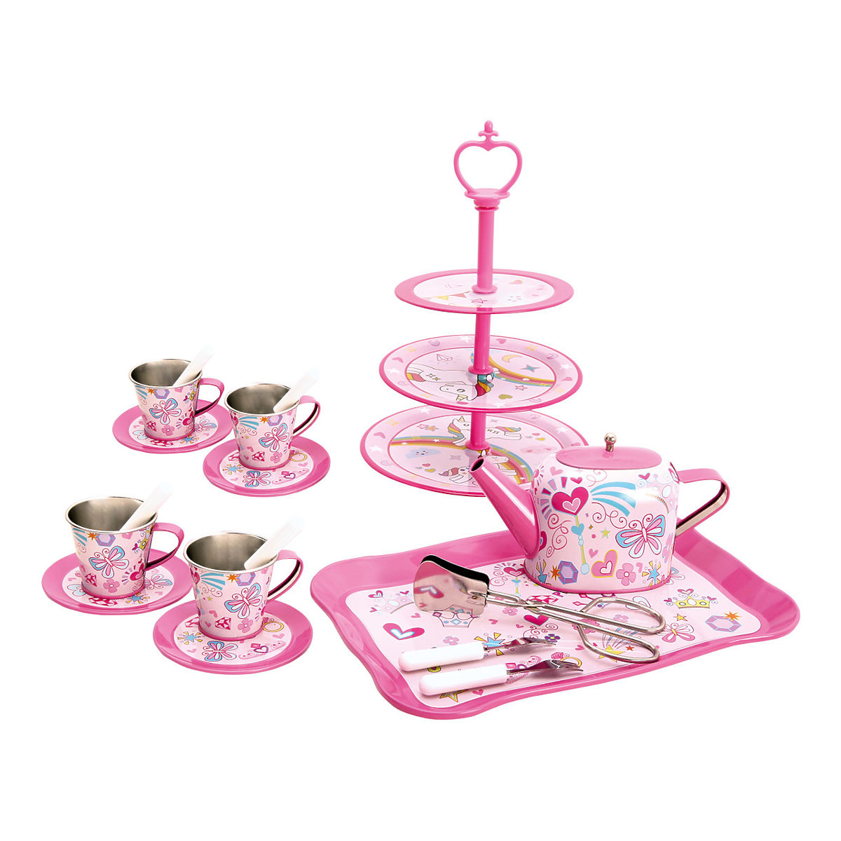 Time for a magical tea party for parents, dolls, and plush friends! With a rich tea service, children can develop their imagination and their social and communication skills. The set is intricately decorated, made from durable lightweight metal and non-toxic plastic. Main features: service for 4 people, 35 pieces in total, durable design