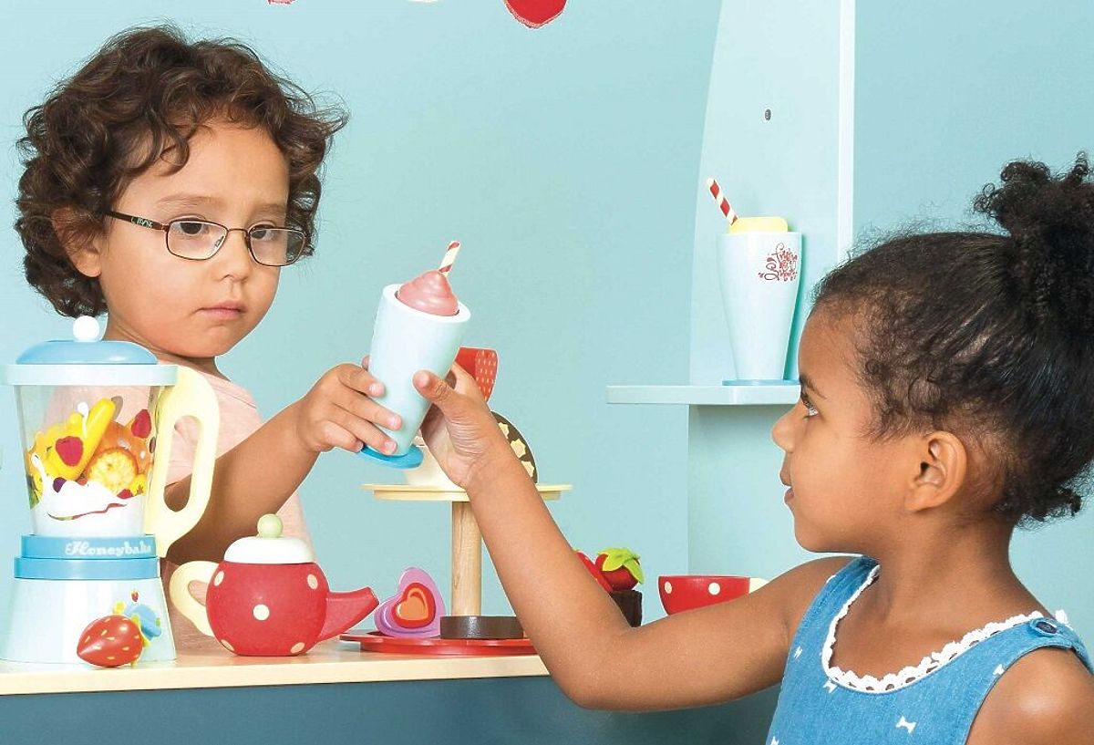 Mix your daily dose of fruit! This interactive wooden set will fit perfectly in any child's kitchen. The classic blender comes with a detachable container, six pieces of sliceable fruit with Velcro, a wooden knife, and two glasses with straws and decorations. The toy has won an award. Purposeful Toys: All Le Toy Van toys are made with the aim of lasting a long time. Lovingly designed by experienced craftsmen using ethical practices and sustainable materials that are kinder to our planet. Main features: ethically made from sustainable wood, tested to the strictest standards, painted with non-toxic water-based paints, inspires imaginative play, develops cognitive skills. Toy Awards: Independent Toy Best Role Play Silver Award. Honeybake Collection: The toys in this collection are suitable for exploration, helping children develop imagination, social and verbal skills, and cognitive functions. The traditional design with modern details is sure to entertain children. Honeybake is Le Toy Van's most award-winning collection, recognized for design, quality, safety, and educational and play value. The FSC® (Forest Stewardship Council) brand and certificate guarantee that the wood used in the product was not illegally harvested and comes from forests managed in an environmentally and socially responsible manner. The FSC® mark on the product means that your purchase helps protect forests and supports sustainable, responsible, or nature-friendly management, making our forests more stable, healthier, with a natural species composition, and better able to withstand the negative impacts of climate change.