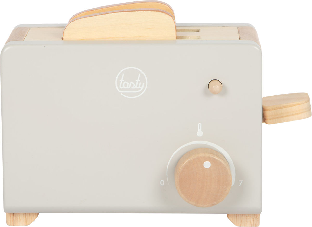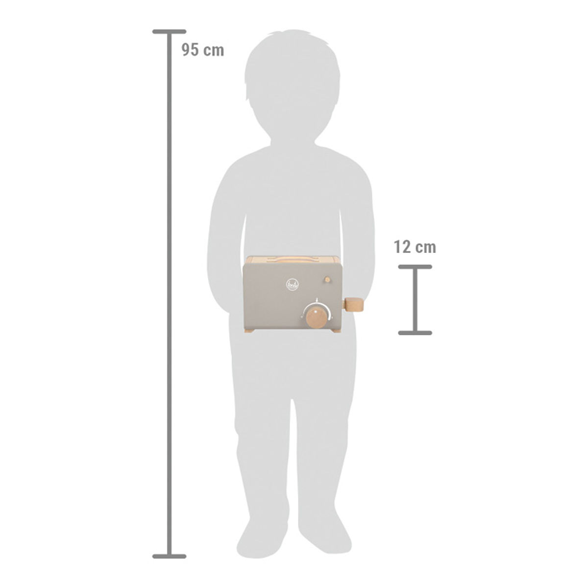 Breakfast is ready! With this compact wooden toaster, breakfast is twice as fun. The slices of toast are toasted until they pop up with the movable handle, and then you just need to place a slice of cheese on top. The clicking rotary knob serves as the on/off button. Now it's time to serve. Main features: set includes 5 pieces, clicking rotary dial