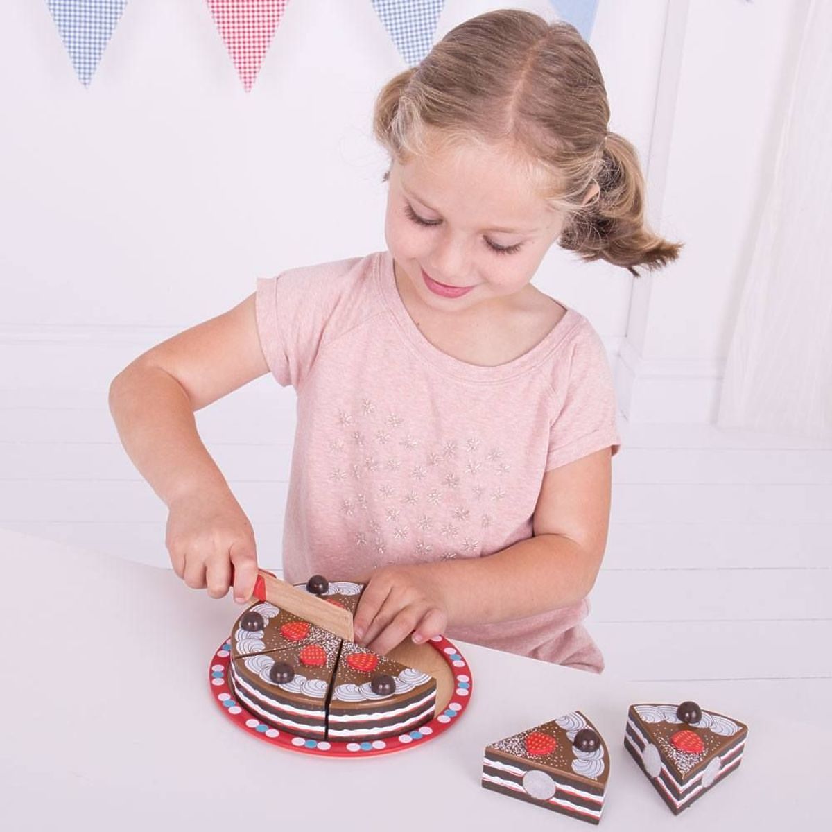 A delicious looking wooden chocolate cake that looks good enough to be suitable for any party. This wooden cake comes with a wooden serving utensil. It's big enough for six little friends on a special occasion or as a tea party side dish. A great way for young people to learn about sharing between friends or family. BigJigs is a big fan of healthy eating and what better way to teach children about healthy eating than with toys from our range? Wooden play food is ideal for teaching your child the importance of a healthy and balanced diet. And also about where our food comes from and how we prepare it. Main features: supports creative and imaginative play made from high-quality, responsibly sourced materials meets current European safety standards