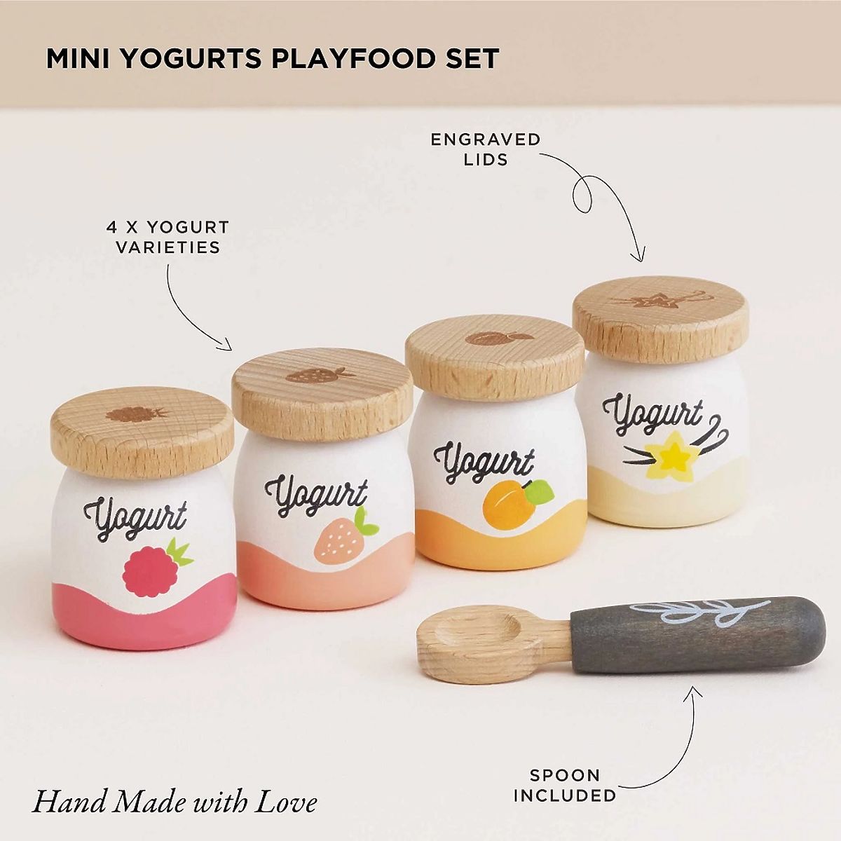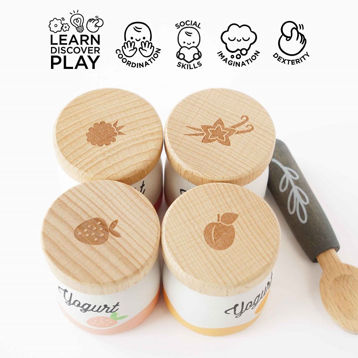 Wooden yogurt set with spoon for imaginative play. .. more
