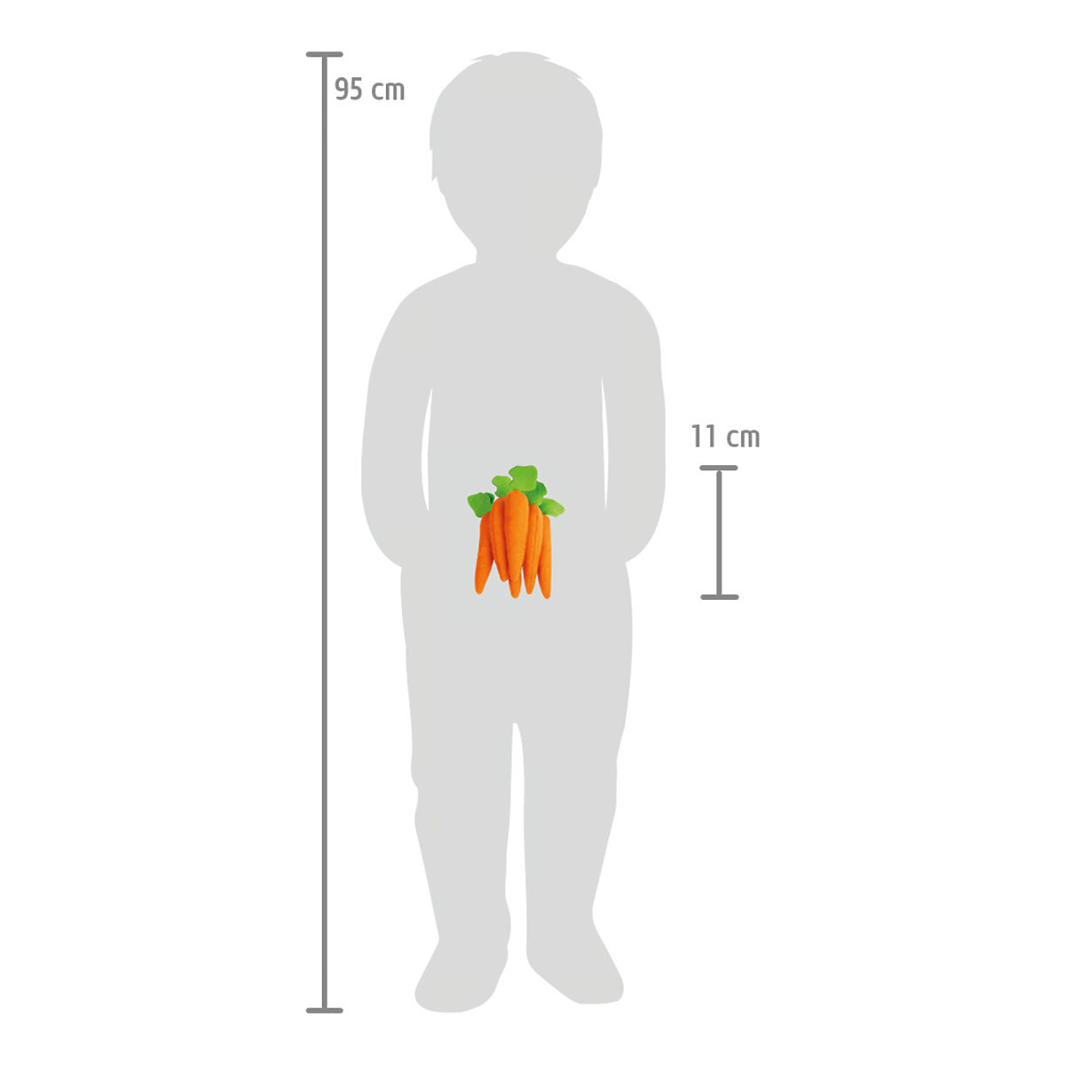 The package contains 7 felt carrots. These carrots attract attention and complement any greengrocer's shop. The carrots are also perfect as feed for a horse, pony, or rabbit. Main features: accessory for a children's kitchen, grocery store, or as feed on a farm