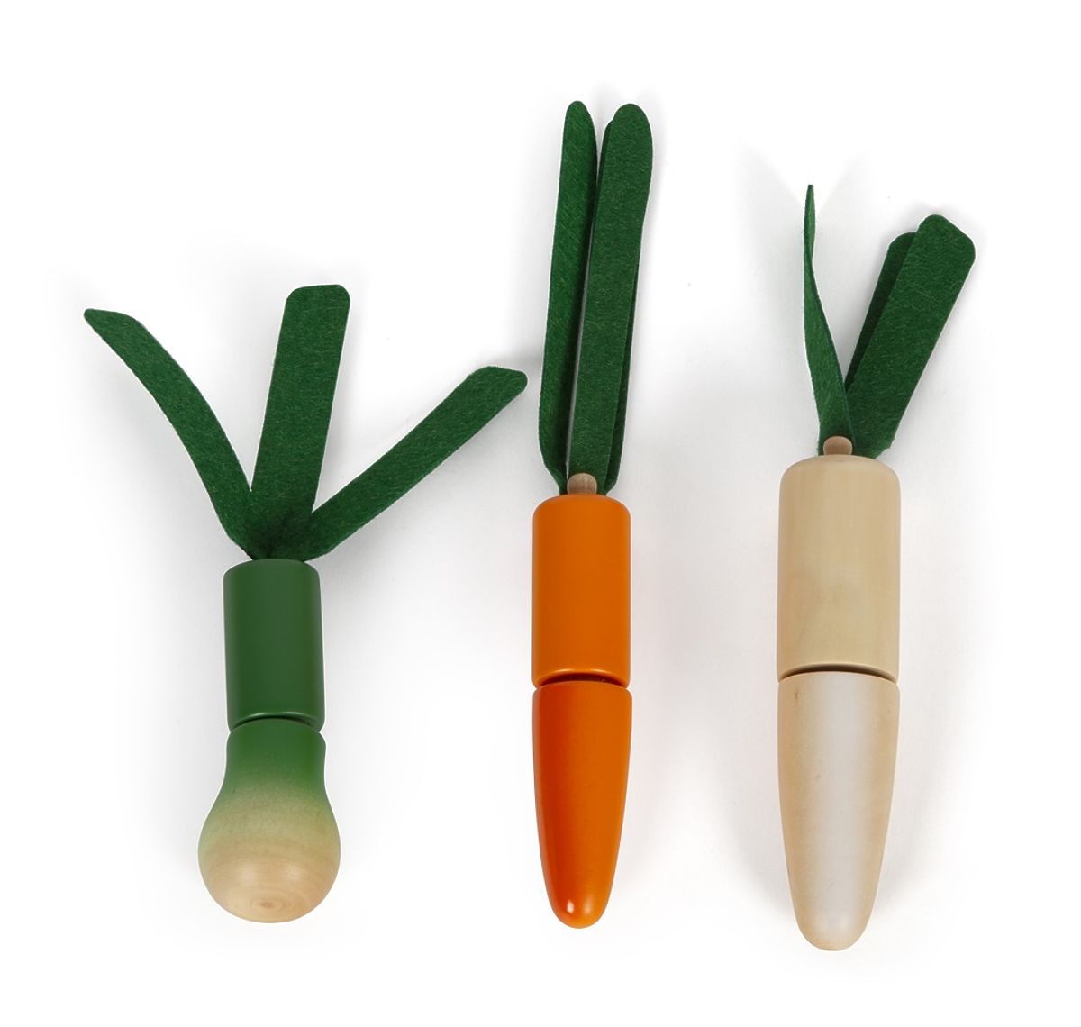 This large set of food in a practical crate is not only an essential addition to any play kitchen but also teaches children to recognize basic types of fruits, vegetables, and other foods. Robust wood was used for production, and everything is realistically crafted. The foods are connected with Velcro, allowing children to easily "cut" them with the included knife. The set includes a wooden knife, tomato, cucumber, carrot, apple, banana, mushroom, pepper, onion, leek, orange, melon, pear, radish (parsnip). The reusable packaging teaches children environmental responsibility in a fun way - reducing waste and litter, reusing items, recycling. Main features: suitable for children's kitchens, foods can be "sliced" thanks to Velcro, teaches children environmental responsibility, encourages creative and imaginative play.