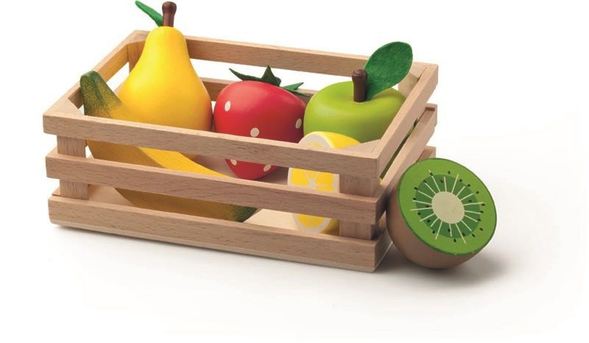 The toy works with the child's imagination. You can play at the shop or prepare delicious meals and fruit salads. Some pieces of fruit have felt leaves that make them look even more real.