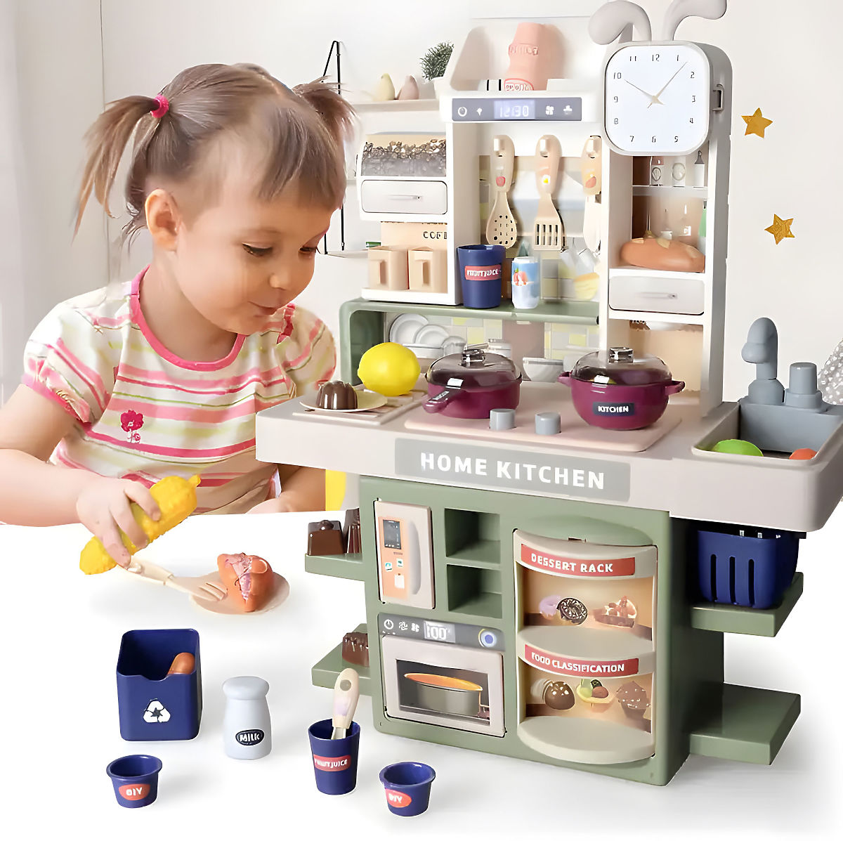 Banaby.eu » Toys / Children's kitchens / Wooden kitchens / Children's Kitchen with Sounds, LED, Steam Generator, 35 Accessories