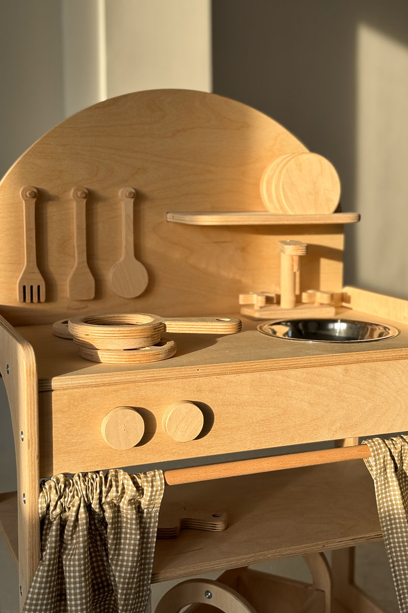 Children's Wooden Kitchen is the perfect toy for all little chefs. This high-quality and meticulously crafted kitchen encourages creativity, playfulness, and learning. Children can cook, bake, explore the culinary world, have lots of fun, and at the same time develop their imagination and manual skills.