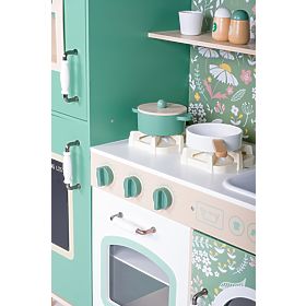 The green Esmeraldia kitchen with a floral pattern will captivate both young and old chefs with its rich accessories and original Vintage style appearance.