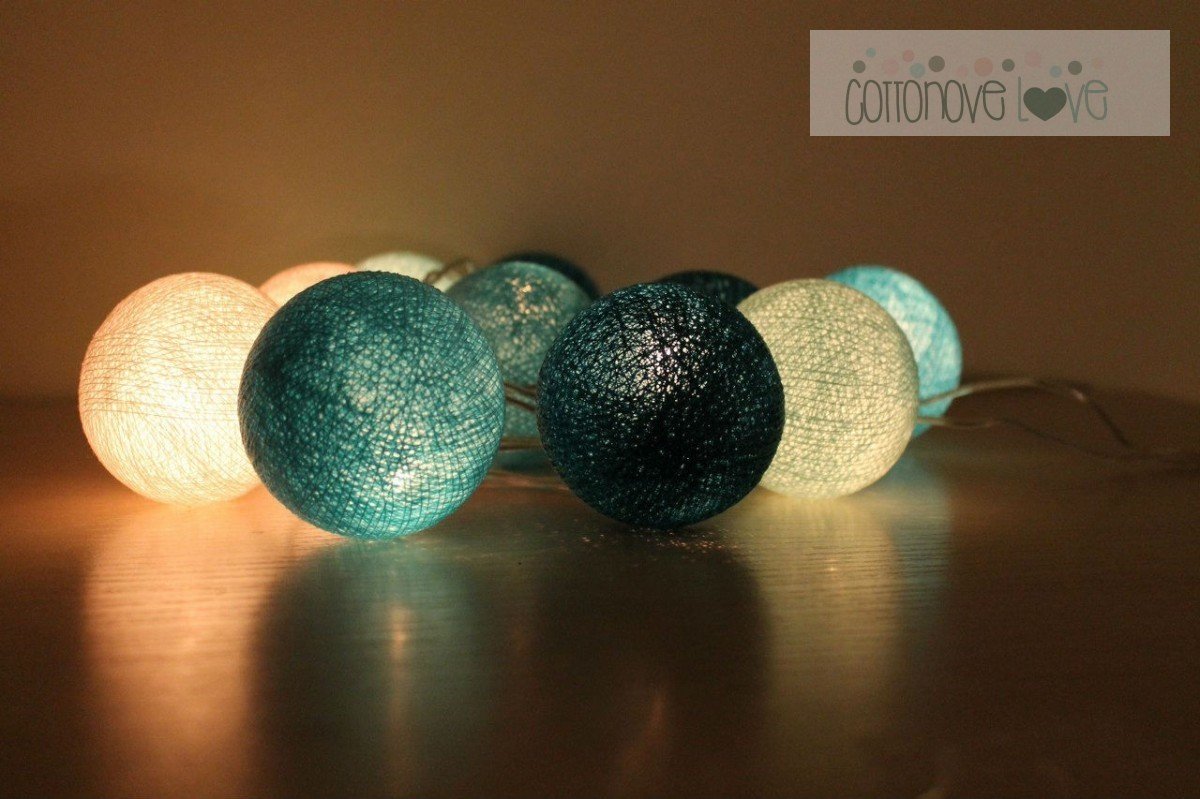 Beautiful garland of energy-saving and safe LED bulbs and cotton balls in beautiful colors. Properties: - Set includes colors: white, light blue, turquoise, .. more