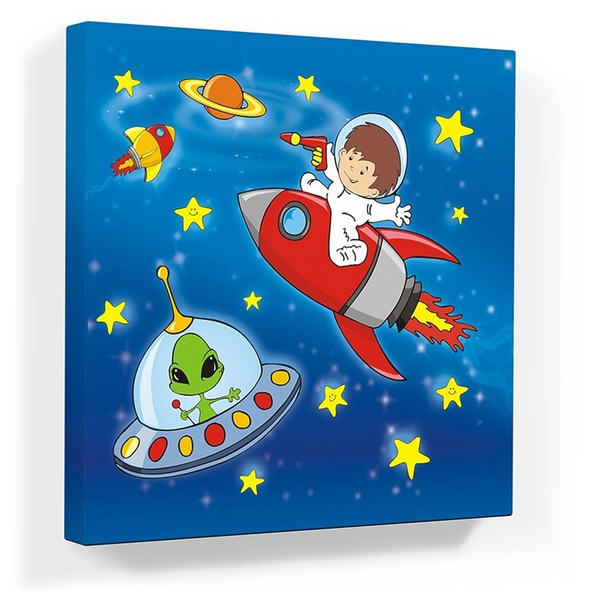 Decorate your children's bedroom with beautiful pictures that bring in a fun children's atmosphere. The Space picture will take your children into the adventurous universe. Thanks to the design, vibrant and vivid colours, the picture will appeal to everyone, parents as well as their children of all ages. The pictures are printed on high-quality canvas using special colours, which this gives the picture its high definition. The canvas is stretched over a 2 cm thick frame The print goes round the sides of the picture, which gives it a dimensional effect.
