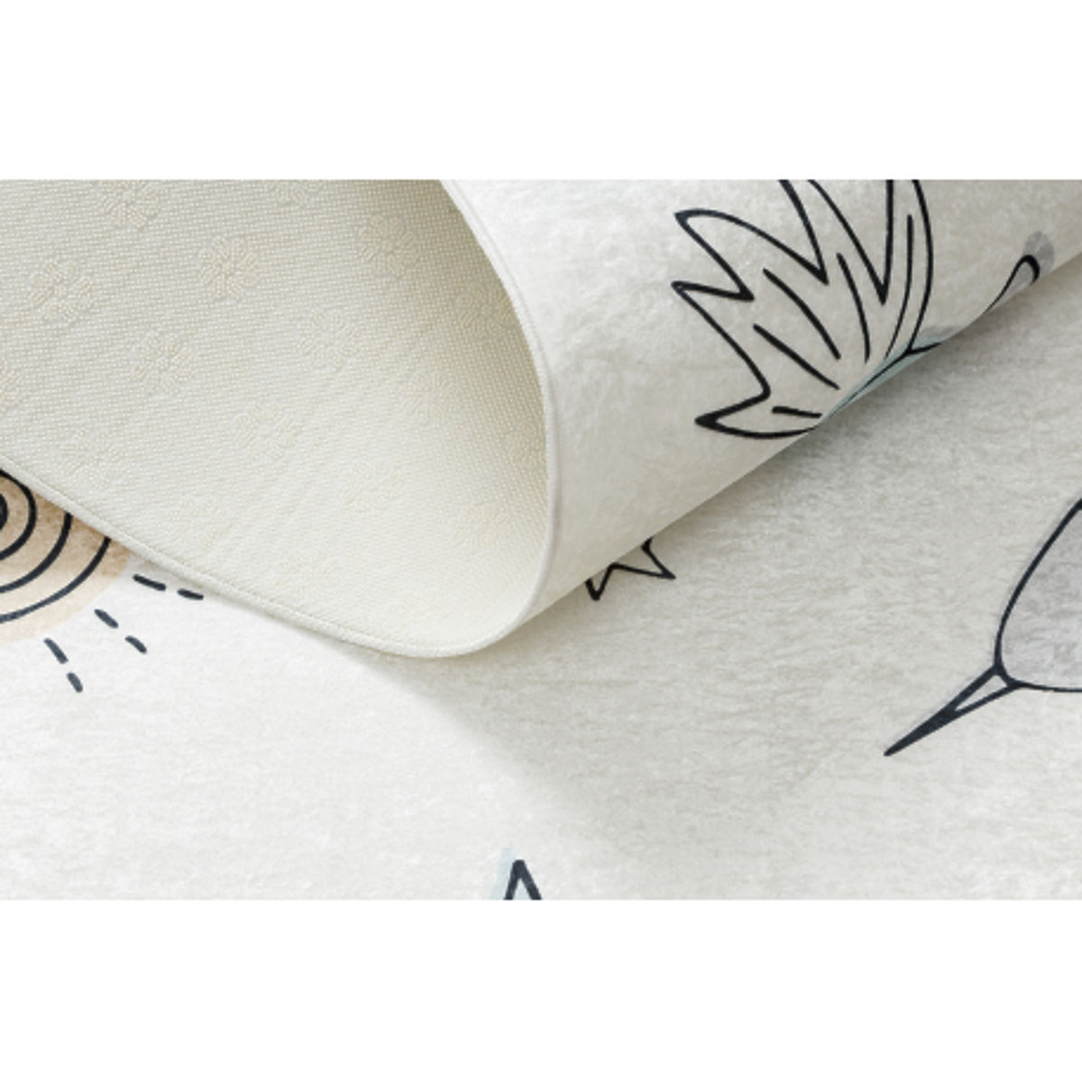 Soft, anti-slip cream rug with a space rocket design for children's rooms. .. more