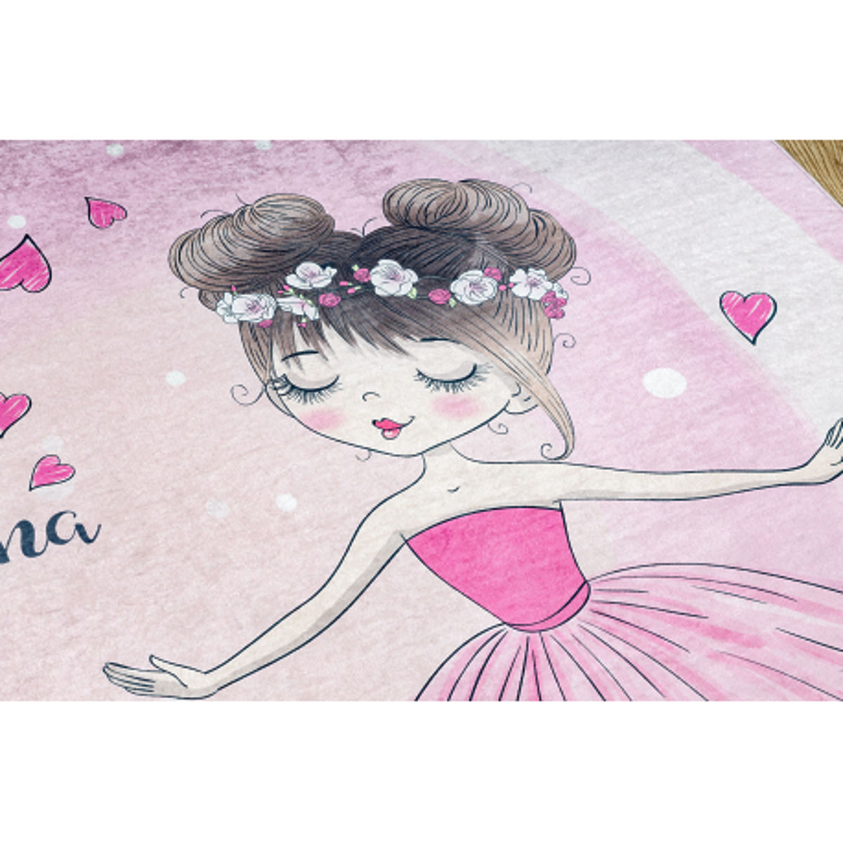 Children's mat with ballerina and kitty design, anti-slip and pink. .. more