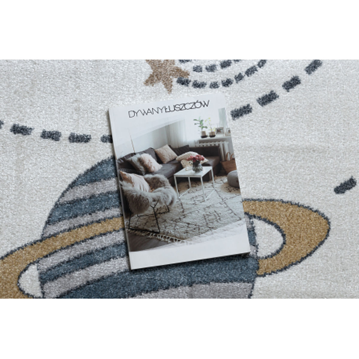 Rectangular carpet with a space and planets theme in cream and anthracite. .. more