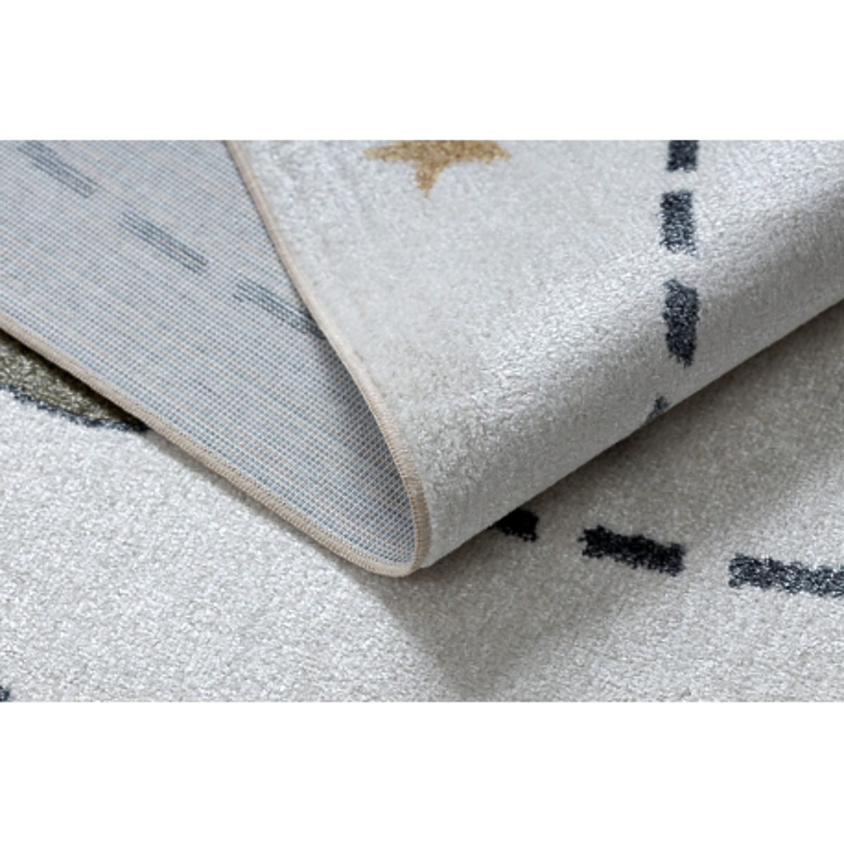 The rectangular BONO 8288 Space and Planets carpet brings a cosmic atmosphere full of imagination and discovery to a child's room. The cream base combined with anthracite details creates a modern and visually attractive look that easily fits into various interiors.