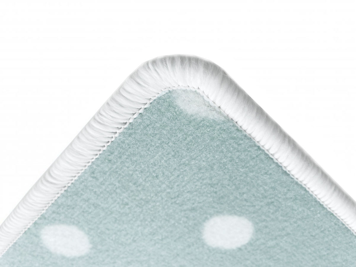 This modern mint rug with white polka dots will make any children's room cozy. Thanks to its low pile and the quality of the material, the carpet is easy to maintain.