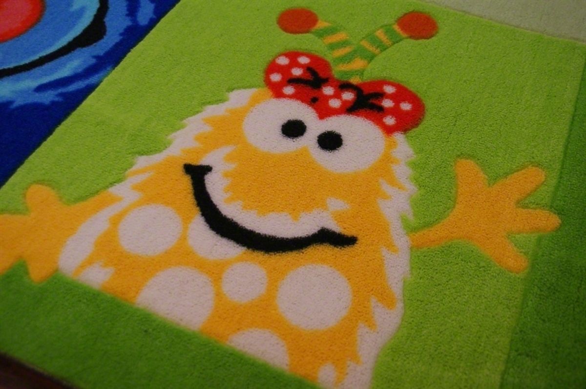 Even though it's made of acrylic fibres, its properties are similar to a woollen rug, as it is very flexible and pliable. It is resistant to chemicals, bacteria and has antistatic properties. This children's rug uses rich colours and the backing is rough canvas.