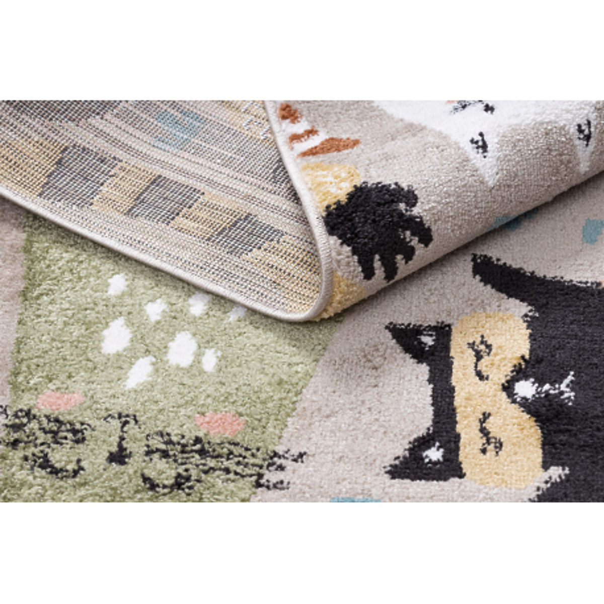 Beige children's rug with cute kittens, perfect for play areas. .. more