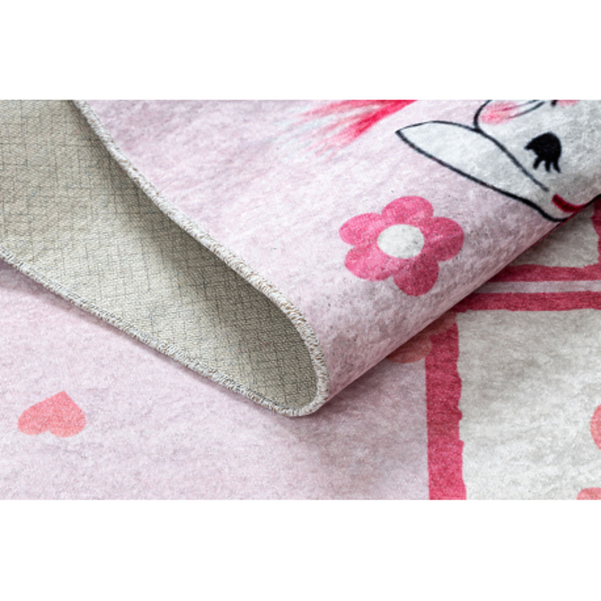 Bring playfulness and joy to your child's room with our rectangular JUNIOR rug featuring a ballerina motif. The soft pink design and cheerful pattern inspire children to move and play while adding coziness to the space. The rug is soft, pleasant to the touch, safe thanks to its anti-slip backing, and very easy to maintain – it can be machine washed. Perfect for a playroom, children's room, or relaxation corner.