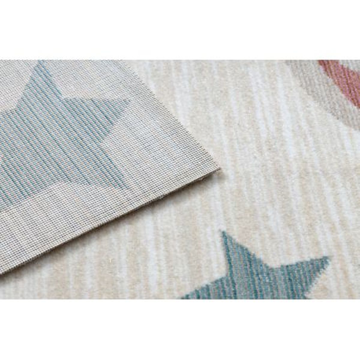Make the children's room cozy with the adorable TOYS rug featuring a teddy bear motif. The irregular shape gives the rug an original look and attracts attention as both a decoration and a play area. The combination of soft cream with playful tones of red and fuchsia creates a pleasant, cheerful atmosphere that beautifully enlivens both girls' and boys' rooms. The rug is made of high-quality polyester, which is soft, durable, and pleasant to the touch. The thickness of 8 mm ensures a comfortable step and an ideal surface for playing. With a weight of 1.60–2.20 kg/m² (depending on the pattern), it is stable and gives a quality impression. A great choice for a playroom, bedroom, or corner for little lovers of soft and cheerful motifs.