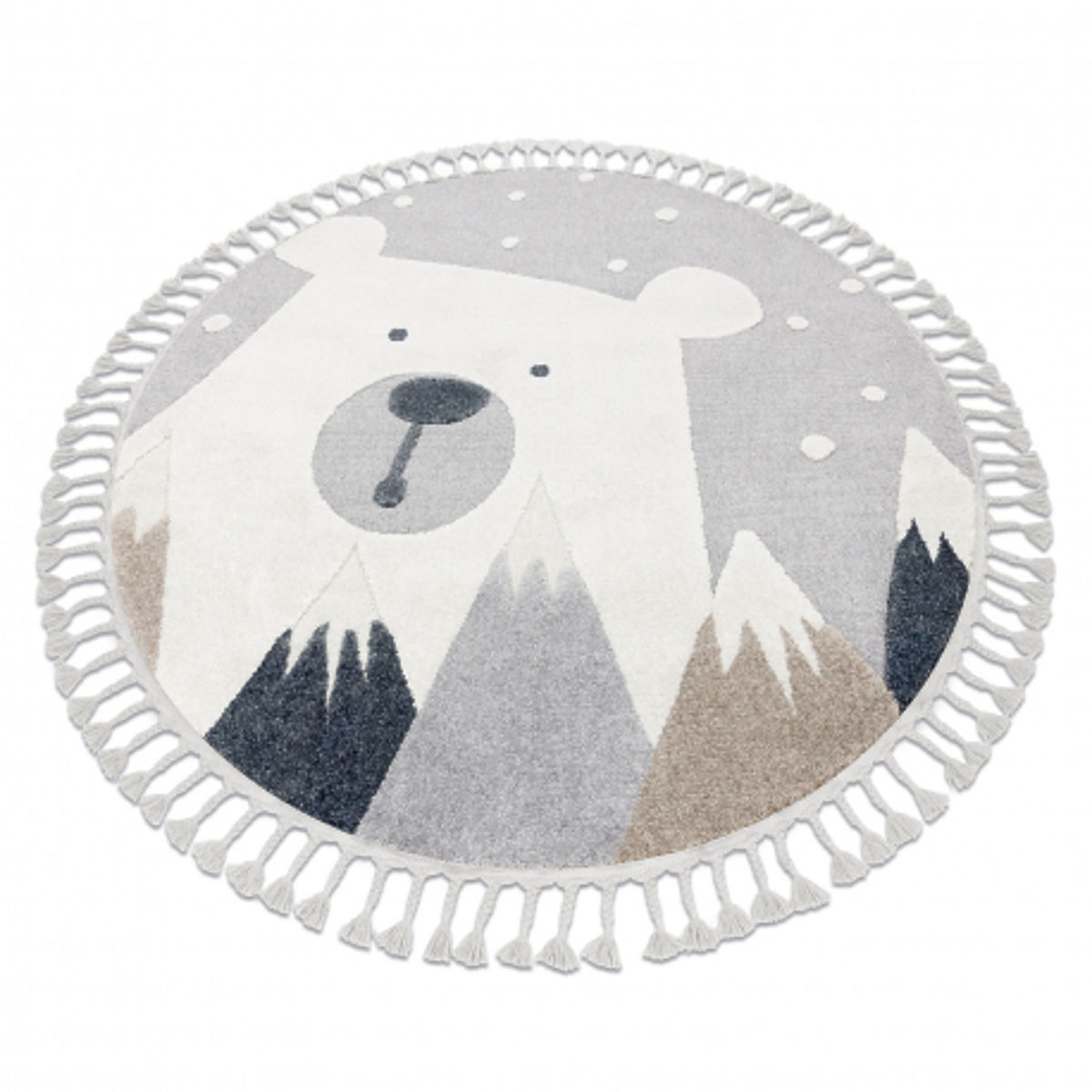 Banaby.eu » Children's furniture / Children's rugs / Children's rugs / Round Carpet YOYO EY81 Gray/White - Bear, Mountains for Children, Structural, Sensory Fringes