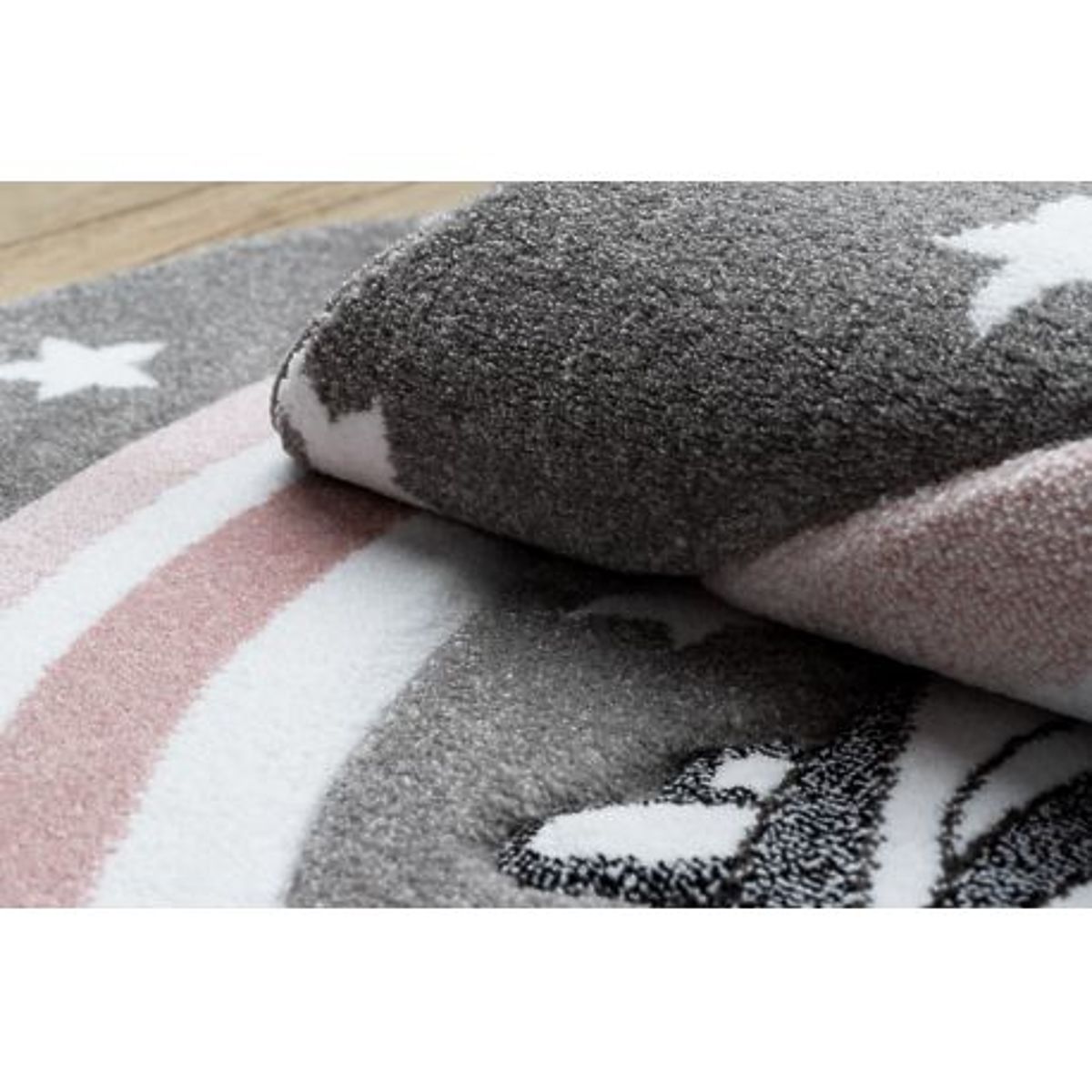 Create a magical and playful atmosphere in the children's room with the round rug PETIT PONY, featuring an adorable pony. The soft gray background adds calmness and neutrality to the space, while the pony motif encourages children's imagination and fun. The round shape creates harmony and beautifully complements the play area, reading nook, or space by the bed. The rug is made from high-quality frisé yarn, which is soft, durable, and easy to maintain. It provides a comfortable and safe surface for playing, sitting, and resting. Thanks to its universal design, it is suitable for rooms of little animal and fairy tale motif lovers.