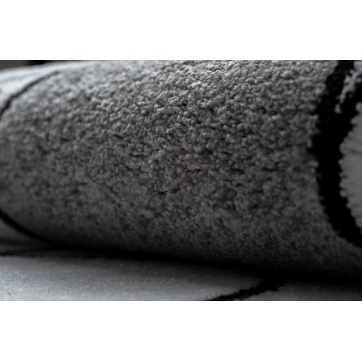 Round rug with a playful puppy motif on a soft gray background. .. more