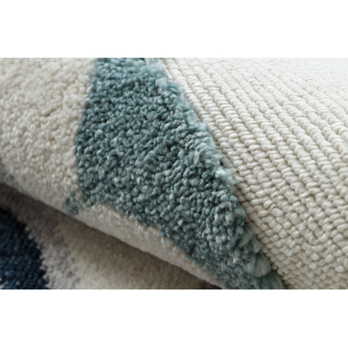 The carpet features a structural surface with fringes that enhances tactile and visual experiences, stimulating children's creativity and curiosity. Made from quality polyester yarn, the carpet is soft, lightweight, and easy to maintain. The carpet thickness ranges from 8 mm to 16 mm, providing comfort for both play and relaxation. The weight depends on the pattern and ranges from 2.0–2.50 kg/m².