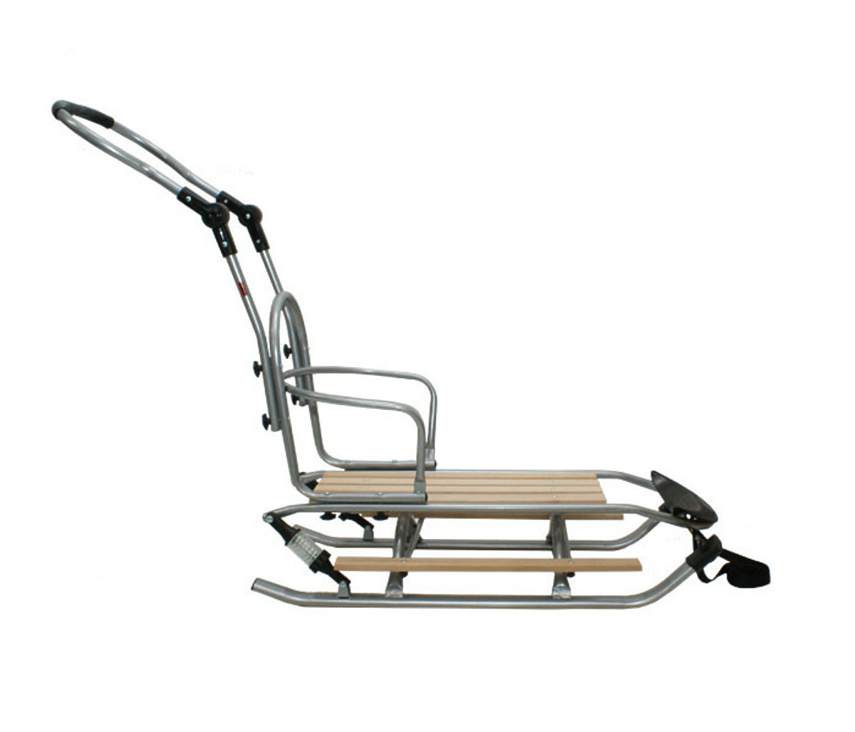 Using the latest production technology, the sledge features special suspension (patented shock absorbers), durable steel frame and a height-adjustable handlebar. Both the handlebar and the backrest can be removed.