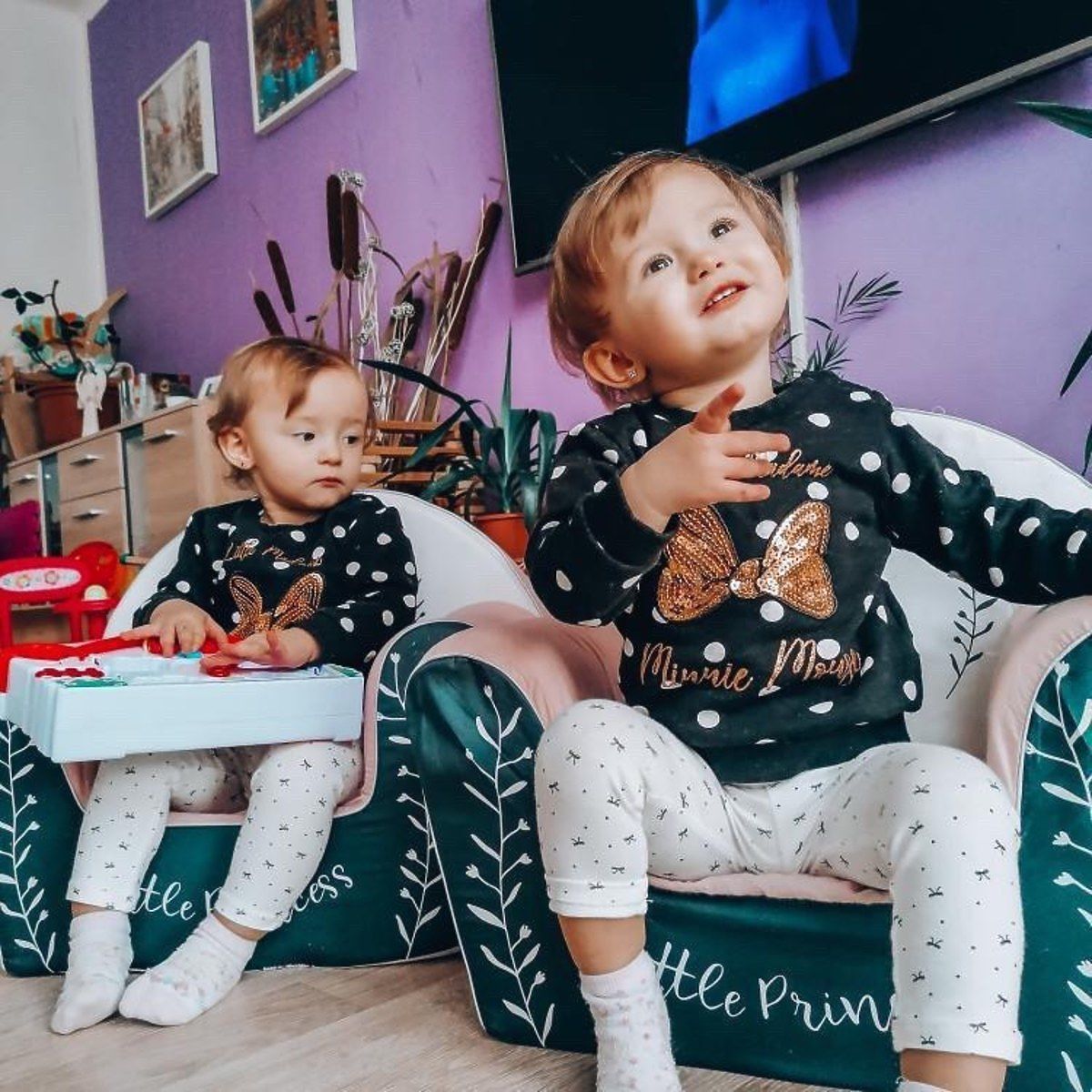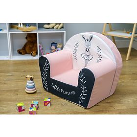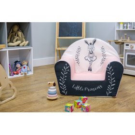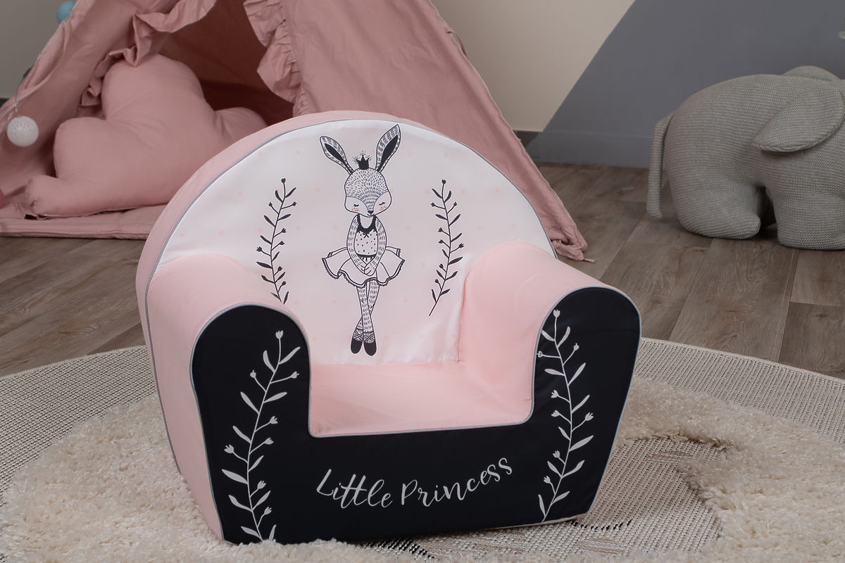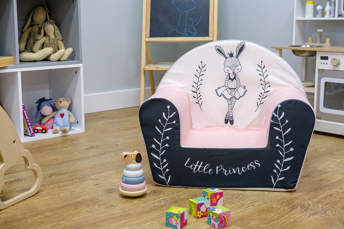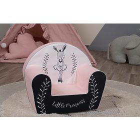 Colorful armchair with the motif of bunny ballerinas. Liven up the room thanks to the combination of white and pink fabric, which girls will love at first sight. On the front of the chair there is a beautiful inscription Little Princess . The children's chair is made of soft and lightweight foam. This ensures that it is safe and practical for everyday use.