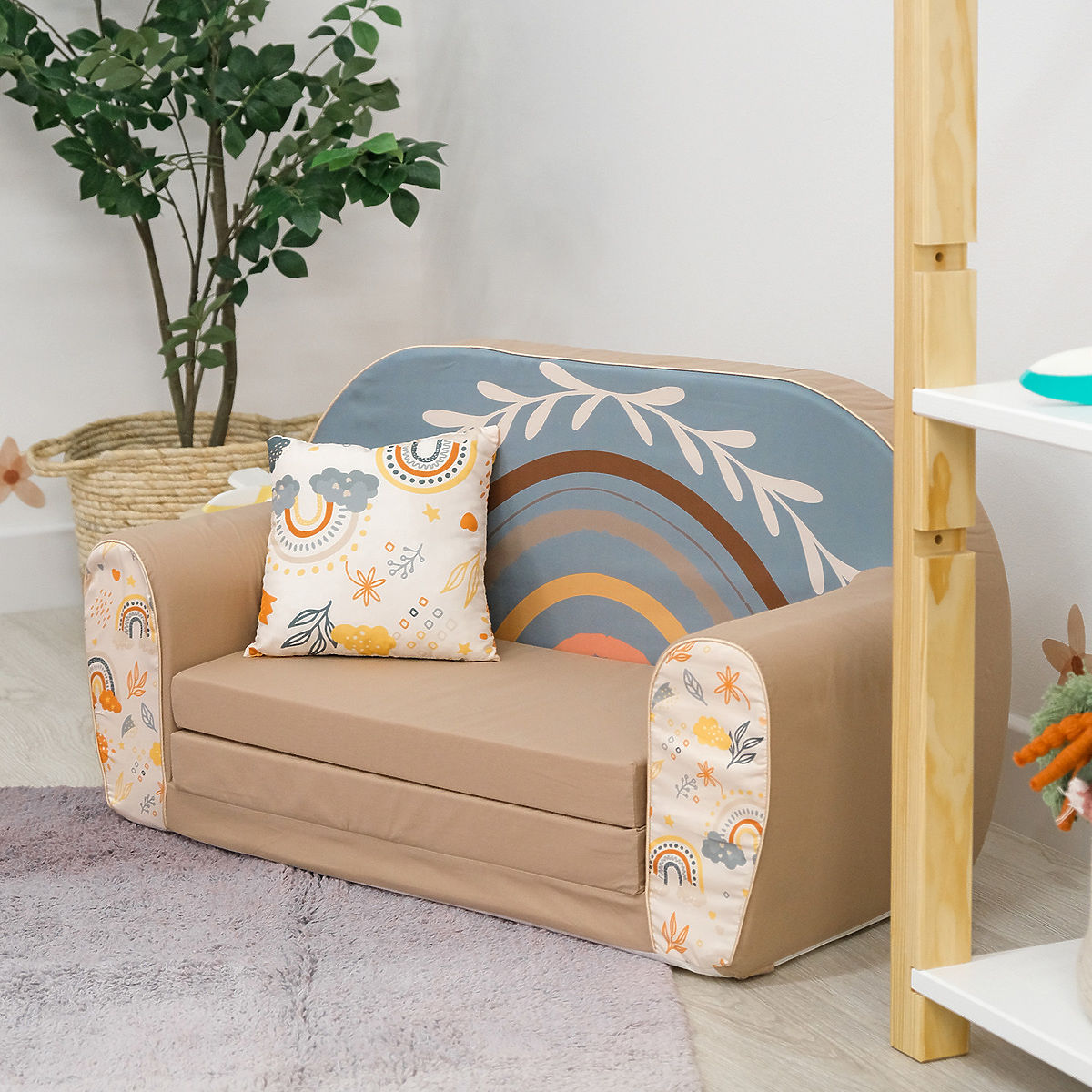 Fold-out children's sofa with autumn rainbow motif, comfortable for two children. .. more