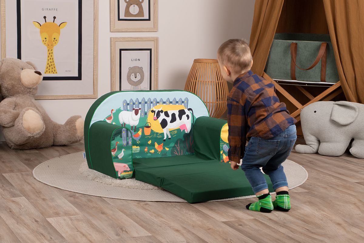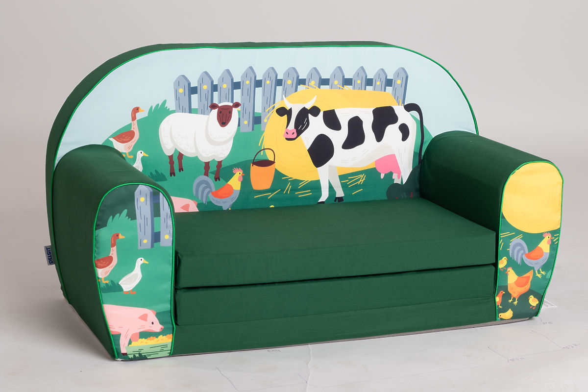 comfortable children's sofa with farm animal motif