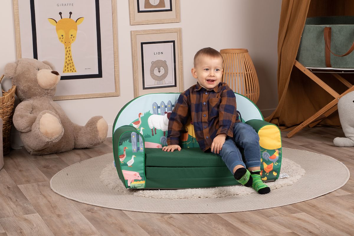 Discover the charm of the countryside with this adorable children's sofa featuring farm animals!