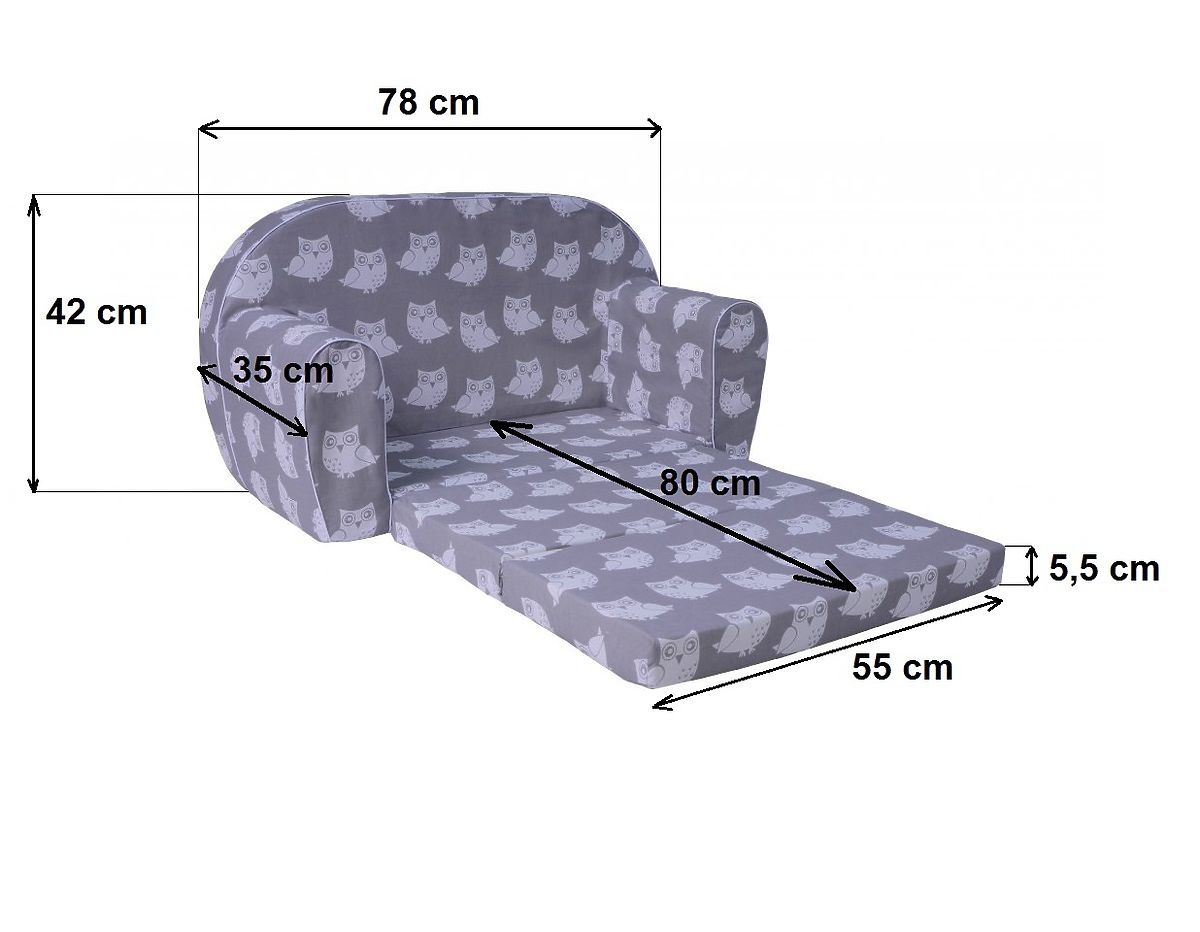 The sofa is more spacious than the armchair, which is ideal for siblings or friends. It was designed so that 2 children can comfortably sit on it. You can even unfold the sofa , which the children will definitely like. When unfolded, the sofa is 80 cm long.