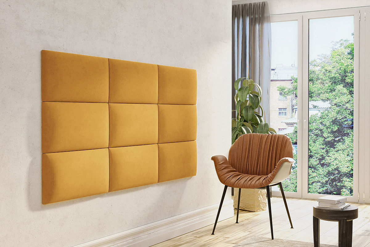 The Classic mustard-colored upholstered panels are available in three different sizes: