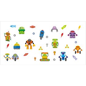Robots are very popular especially with little boys. Is your little boy one of them? Does he collect robots and are they pretty much on everything at home? Bedding, clothing, notebooks, etc.? Are you thinking that you'd like to liven up his bedroom and make it more vibrant? It will be easy with this wall decoration! The Robots wall decoration is the one for your little boy! He can now spend a lot of time with his favourite robots, who can draw him into their games. The Robots wall decoration uses beautifully vibrant, rich and cheerful colours that complement every child's bedroom, making it much prettier! It will create the right fun atmosphere!