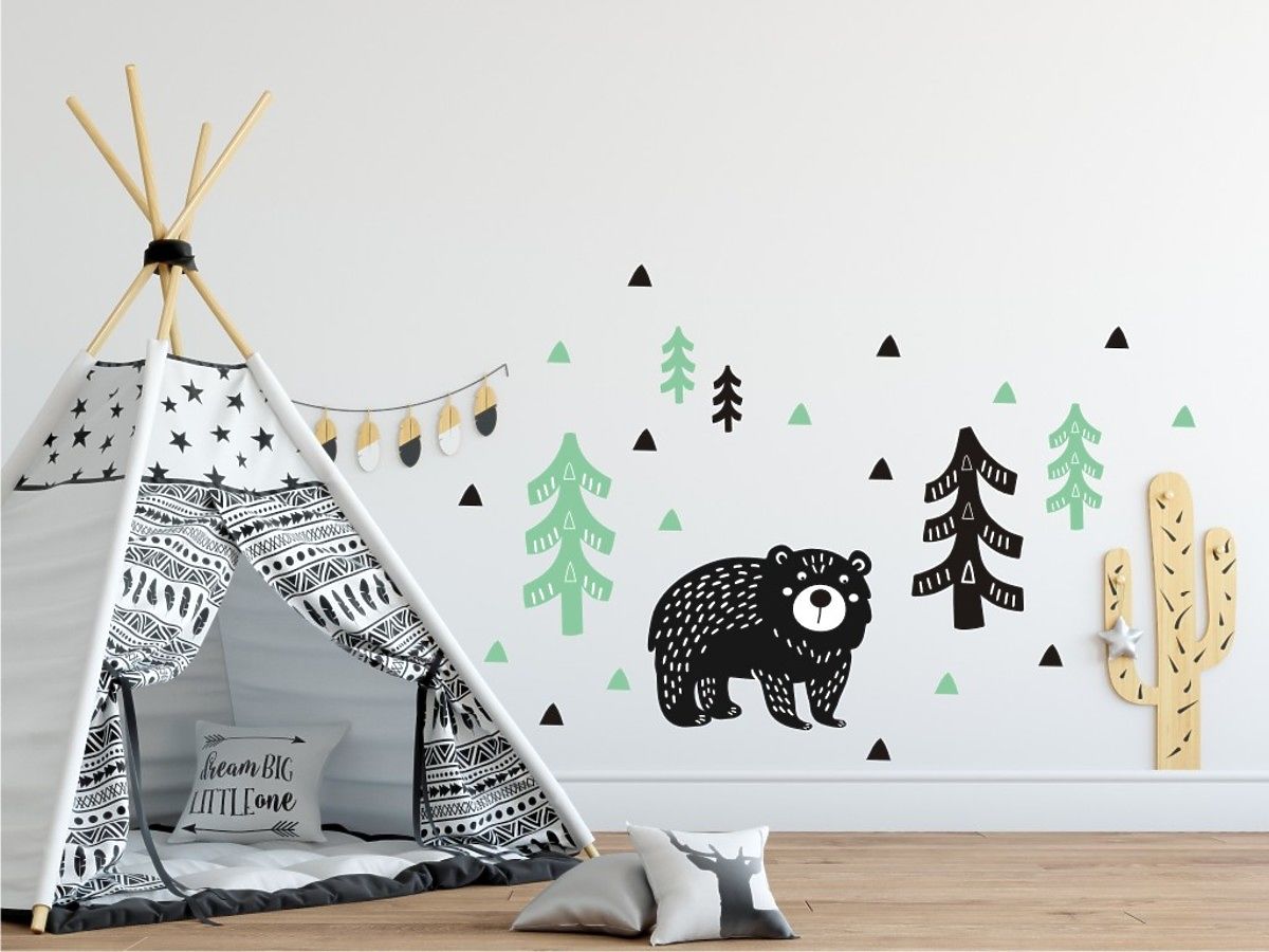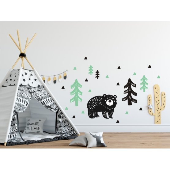 Banaby.eu » Decorations / Children's stickers / Children's wall stickers / Wall decoration Bear in woods mint-black