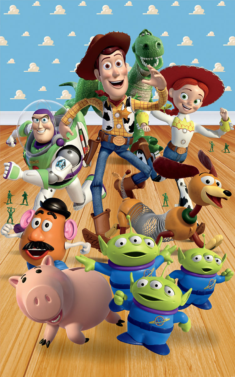 A beautiful wall mural featuring the lead characters from the popular cartoon Toy Story. .. more