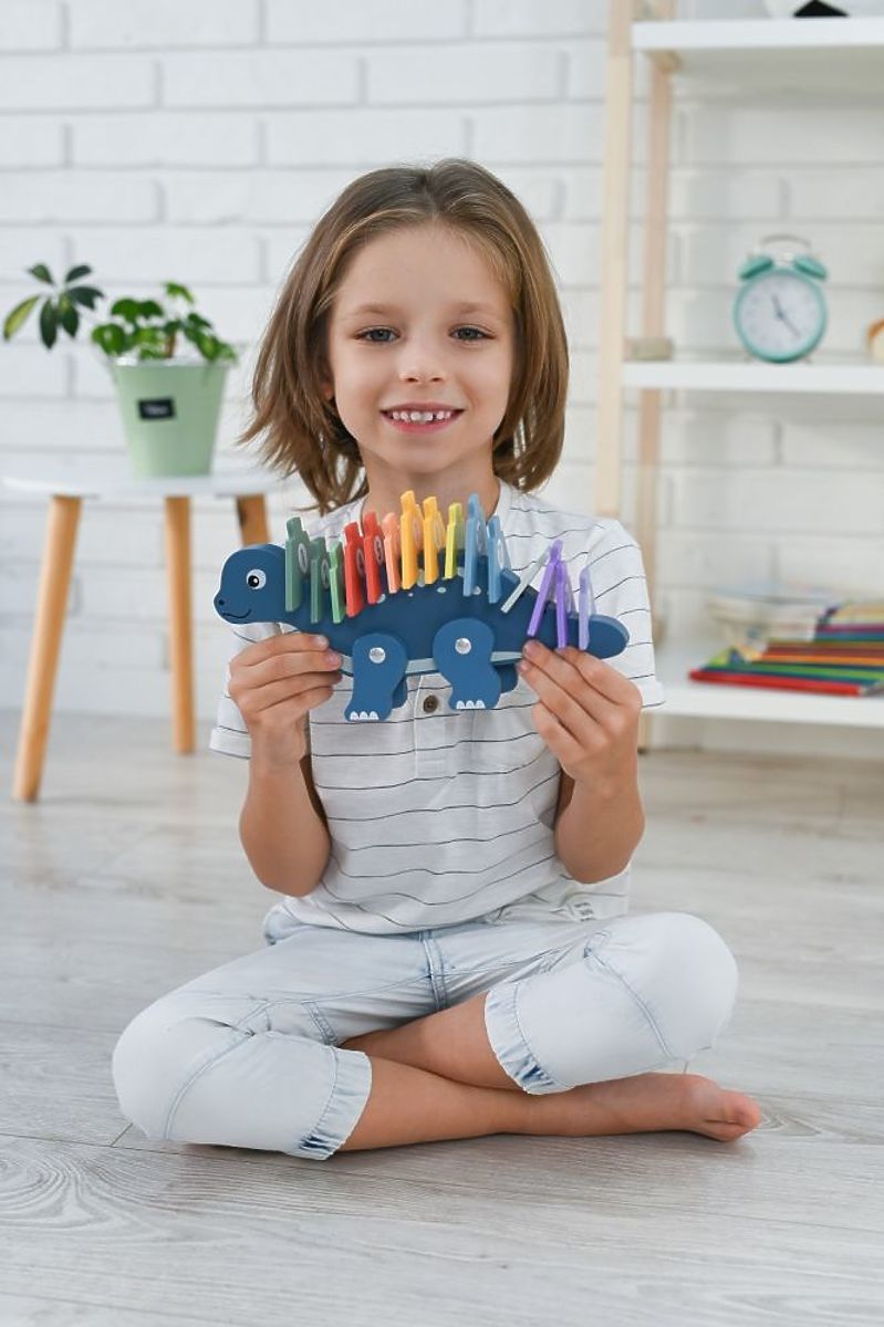 The mathematical triceratops comes equipped with numbers from 1 to 15, making it easier for students to get acquainted with addition and subtraction. Arranging the blocks can also be a big challenge - for example, we can give the child a task to arrange the numbers from smallest to largest. There are many possibilities to make learning to count pleasant and fun. The toy's advantage is the design of the elements, ensuring they fit both the dinosaur and each other. Thanks to this, we can arrange them on a table to create a colorful mosaic or play with the numbers.