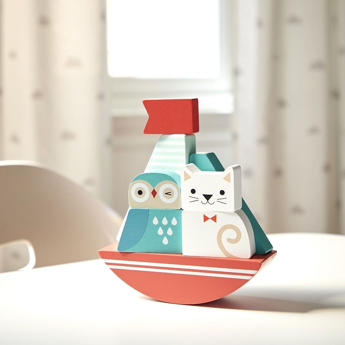 Hooray beyond the horizon! Gather the crew, hoist the sails, raise the flag, and witness a remarkable voyage! This adorable boat is made up of pieces of sturdy wood, perfect for little hands to hold. With a rounded base, it adds charm to the entire toy (the boat has a rocking motion, making play even more interesting)! Main features: develops fine motor skills and dexterity, improves hand-eye coordination, made from 100% FSC® wood. The FSC® (Forest Stewardship Council) brand and certificate ensure that the wood used in the product was not illegally harvested and comes from forests managed in an environmentally friendly or nature-friendly way, adhering to strict environmental and social requirements. The FSC® mark on the product means that by purchasing it, you help protect forests and support sustainable, responsible, or nature-friendly management, making our forests more stable, healthier, with a natural species composition, and better able to withstand the negative impacts of climate change.