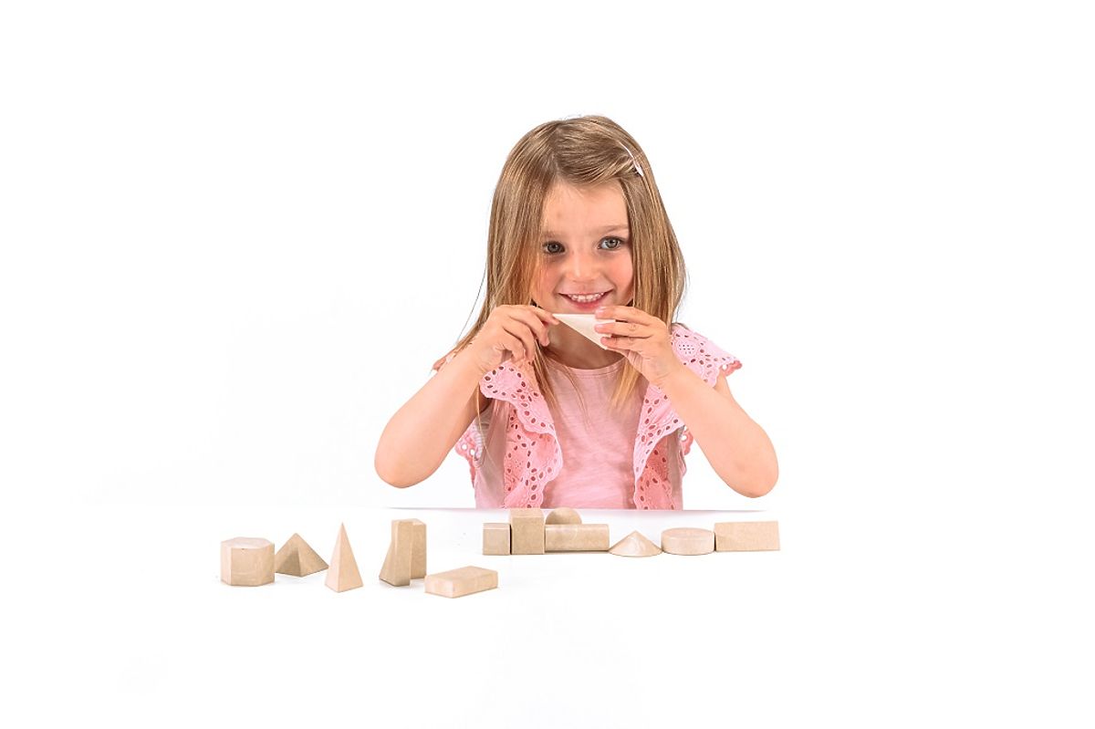 14 different wooden geometric solids that serve for play but are also suitable as a teaching aid. Can you recognize and name them all correctly? Thanks to these blocks, a child will gain an understanding of words such as surface, edge, corner, side, diagonal, line segment, right angle, or perpendicular. Show them what a cube, cuboid, prism, cylinder, pyramid, cone, or sphere looks like. Made from 100% recycled materials, it is PEFC certified and can be recycled repeatedly after use. Main features: contains 14 pieces suitable as a teaching aid for early geometry learning made in Germany