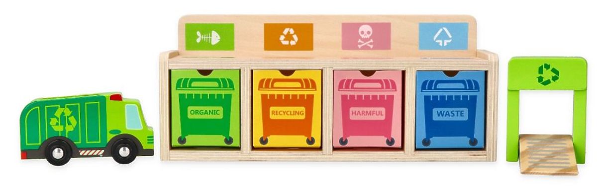 After classification by the sorter, the waste needs to be loaded onto the garbage truck and then placed into one of the above containers. If you have a dilemma about where to place the waste, you can always look at the back of the tile. This educational toy is not just about fun. It is primarily about learning to care for our environment and the planet we live on. Children should learn this from an early age.