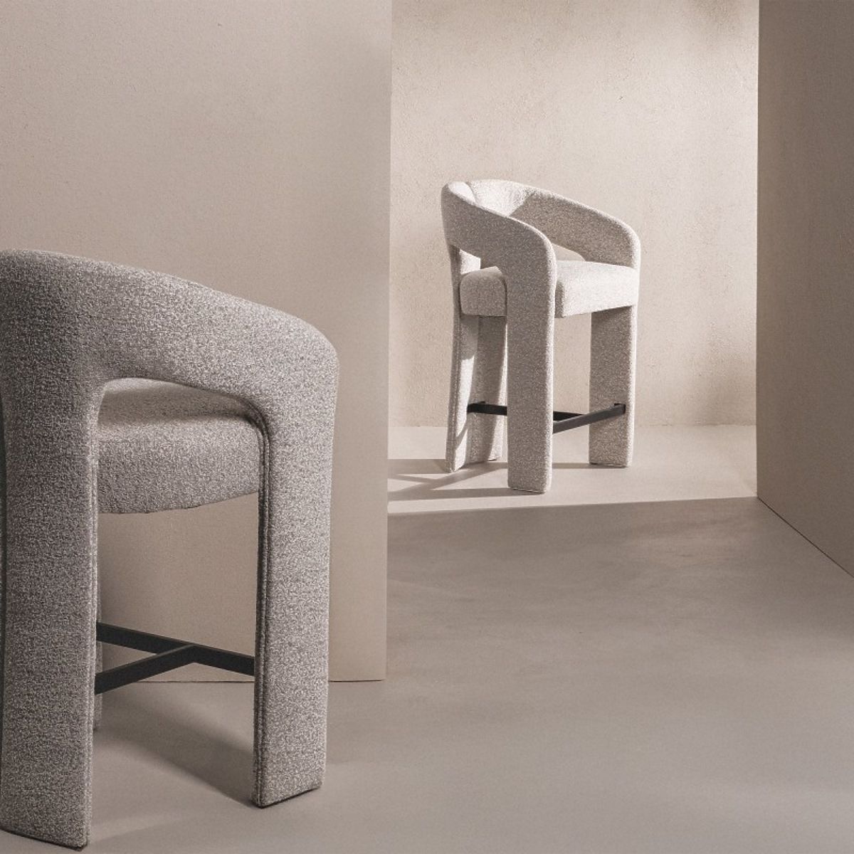 The Castelo bar stool is a blend of modern minimalism and cozy elegance. The soft fabric, rounded shape, and comfortable armrests ensure everyday comfort, while the sophisticated details make it ideal for the kitchen or dining room.