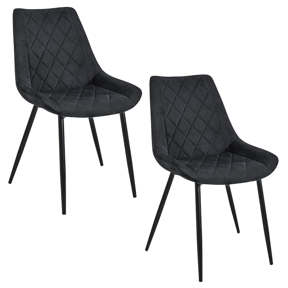 Set of two black velour chairs with a modern design. .. more