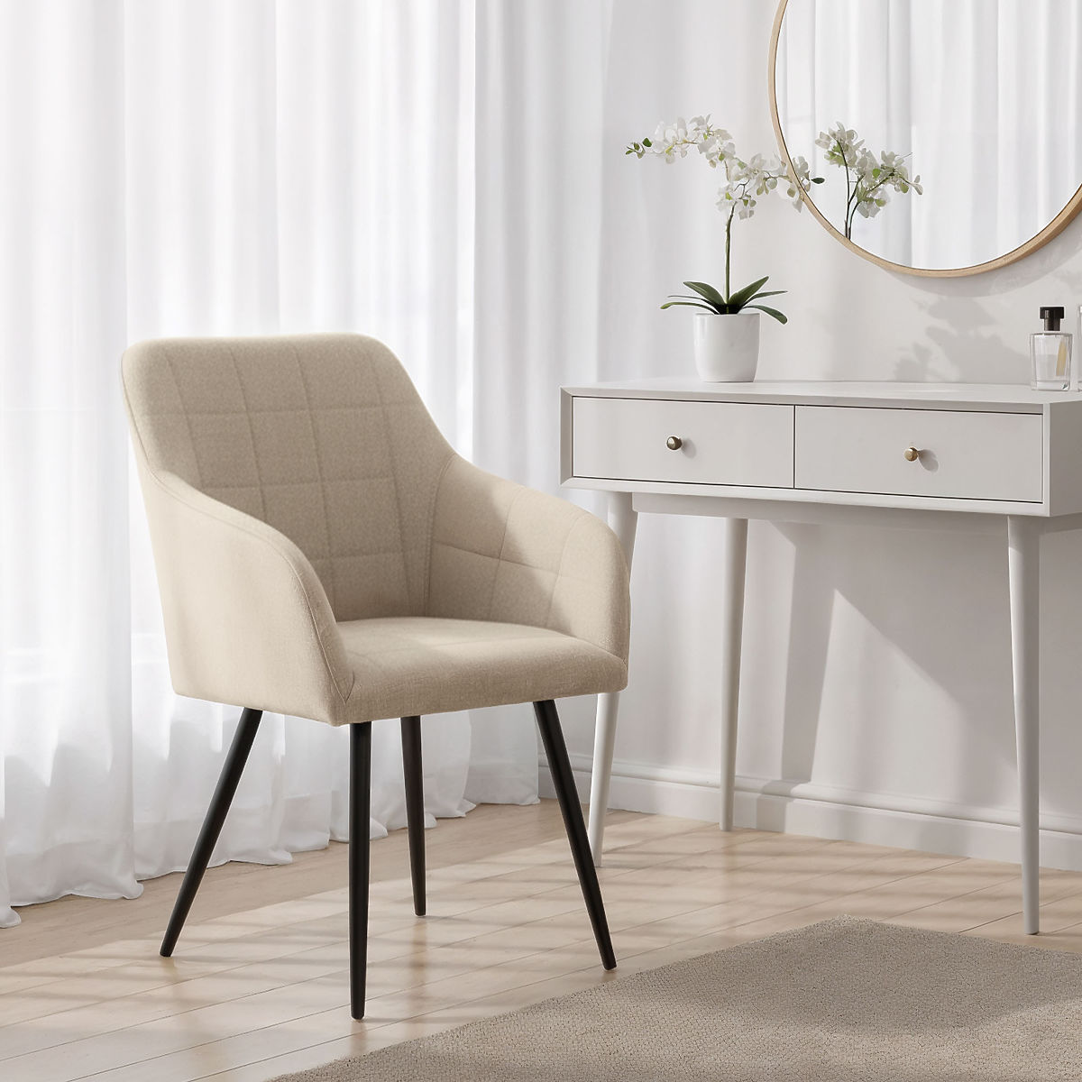 Banaby.eu » Furniture / Dining room / Dining chair / 4x Upholstered Chair with Square Quilting Beige LUXANO Black Legs Lumos Fabric